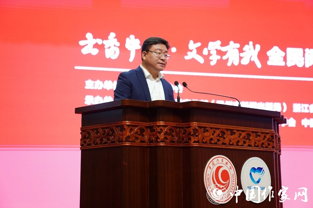 邱华栋在致辞中表示,党的十八大以来,以习近平同志为核心的党中央高度重视全民阅读工作,中国作家协会深入学习贯彻习近平新时代中国特色社会主义思想,把全民阅读工作放在重要的议事日程,作为开展全民阅读活动的倡议发起单位之一,坚持以多出优秀作品为中心环节,充分发挥文艺作品精品教育引领工作作用,积极做好文学的推广和普及,持续推进全民阅读工作。中国作家协会及各团体会员单位完善扶持和激励机制,加强优秀文学作品的创作、生产、出版和传播。中国作家协会组织开展了“中国作家文学周”“文学照亮生活”公益大讲堂、“中国作家文学公开课”、文学阅读推广会等一批品牌项目。邱华栋概括了当下全民阅读的几个特点:数字化阅读与多媒体阅读成为大势所趋;文学阅读惠及基层群众的范围逐步扩大;公共阅读软件硬件设施日趋完善,公益阅读推广组织和文学志愿者服务队伍逐步扩大。全民阅读工作在新时代肩负着新使命和新职责。邱华栋说,在今后的工作中,中国作协和各团体会员单位将继续坚持以全民阅读工作为重要抓手,创作出版和传播更多反映时代呼声,展现人民奋斗,振奋民族精神,陶冶高尚情操的优秀文学作品。