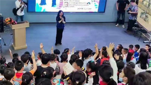 在苍南书城,杨红樱与小读者们分享了《淘气包马小跳》系列图书的创作故事。杨红樱说,马小跳的生活原型是她当老师时遇到的学生,她见证了马小跳从顽皮男孩逐渐成长为优秀学生的过程,希望将这段经历分享给更多小朋友们。她鼓励小读者要从马小跳身上汲取成长的动力,即便觉得当下的自己不够完美,也要和马小跳一样积极进取,努力成为最好的自己。此外,她还为大家讲述了作为儿童作家的丰富经历,并与小读者进行了亲密互动。