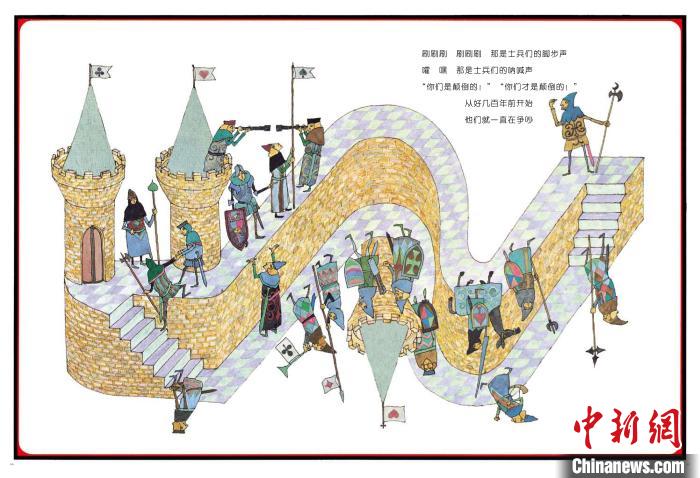 非凡的想象是安野光雅作品最鲜明的特征。他的处女作《奇妙国》充满了各种各样天马行空的想象,他还大玩视觉游戏,运用矛盾图形、透视、空间错位等手法,建构出一个现实中不可能存在,但又合乎空间逻辑的奇妙世界,大胆的想象与周密的设计令人叹为观止,这样的创作方式在同时期的儿童绘本中并不常见。此外,他还极为先锋地将数理知识融入绘本,做到了艺术性和科学性的完美结合。《颠倒国》作为《奇妙国》的姊妹篇,就将地理知识融入了故事叙述之中,运用镜像般的图画语言,向读者展示了一个光怪陆离的颠倒世界。幽默的故事背后,还暗含了“相对”的哲理。