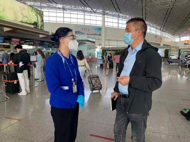 在采风活动中,作家狄青在天津滨海国际机场分别采访了三名优秀基层共产党员——天津机场客运部国际航班服务员陈霞青、天津机场安检部旅检二分部中队长田雪和天津机场客运部党支部书记、综合办公室主任叶昕。由于“五一”期间机场旅客量暴增,工作异常繁忙,三位基层共产党员代表一直坚守在自己的工作岗位。为此,狄青主动配合他们的工作节奏,利用间隙时间边工作边采访边体验生活,在与优秀党员代表共同劳动的过程中更加深了对机场一线工作的理解。