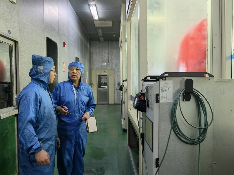 厂房二楼喷涂环节。在涂装工艺工程师杨浚珑指导下,我穿上了平生第一次穿的防护服。跟着杨工,通过狭小风淋室除尘后,出现在眼前的是一条长长的玻璃廊道,左有一排布列整齐、纪律性强如工人阶级的6个机器人,正挥动有力手臂。一路走过去,我看见每个机器人手掌都发出一道呈扇形的高达1000多度的蓝色火焰,扫射在产品上。杨工,河南济源人,他幽默地说,喷涂会产生有害气体,所以我们就邀百毒不侵的机器人来干。说话间,两位维修工,戴防毒面具,进玻房对一个机器人做卫生。一楼有淡淡的油漆味,这里浓些。