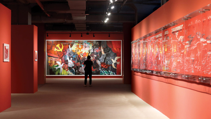 “曙光——红色上海·庆祝中国共产党成立100周年主题艺术作品展”在杨浦滨江毛麻仓库举办。