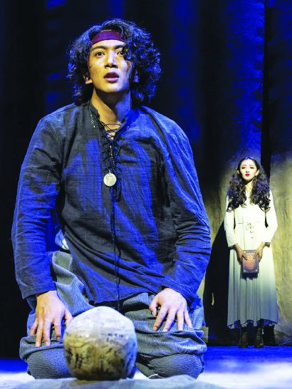 藏族班的毕业生——这群进校前还不能流利地说普通话的学生,会如何驾驭表演呢?这也是我关切的问题。导演在排练场的一句话解答了我的疑问,导演说:“从现在开始,我会让你们做出自己想表示的动作,我不会阻挠。”很明显,导演给予指导,又给予演员充分的自由贯穿了全部的排练,从而使我们能看到舞台上那些非常年轻的演员能如此自如地塑造角色,没有让人感到尴尬的一刻。