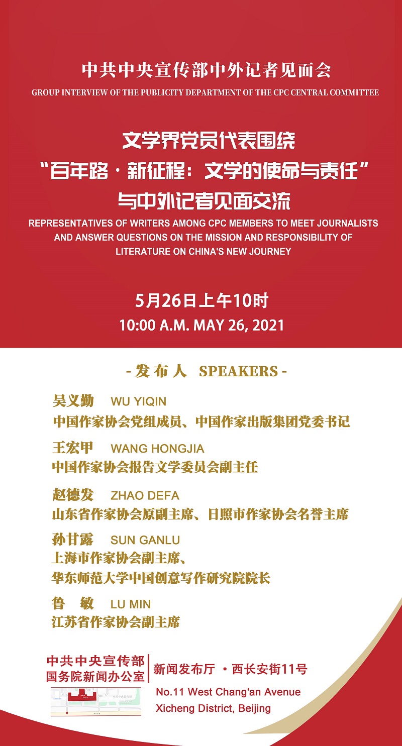 中宣部举行“百年路· 新征程:文学的使命与责任”中外记者见面会