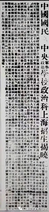 刊登于上海《民国日报》上的消息“中国国民党中央军事政治学校政治科上海招生揭晓”