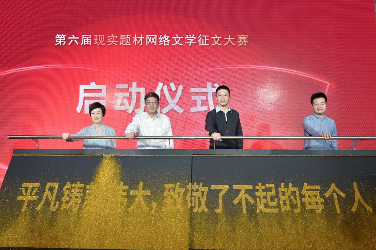活动现场,上海市委宣传部副部长王亚元、上海市委宣传部网络出版处处长丁晓玲、阅文集团首席执行官兼腾讯集团副总裁程武、阅文集团总编辑杨晨共同启动第六届现实题材网络文学征文大赛。