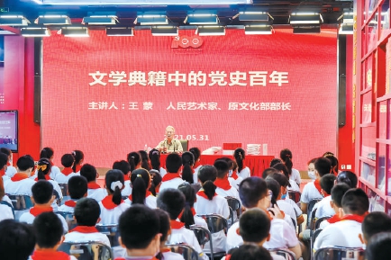 为进一步向少年儿童讲好党史故事,5月31日,首都图书馆与北京市图书馆协会联合相关单位推出“童书经典中的党史——庆祝中国共产党成立100周年主题童书展”。开幕当天,作家王蒙以《文学典籍中的党史百年》为题,为现场的100多名小学生及广大市民讲了一堂文学气息浓厚的党史学习公开课。