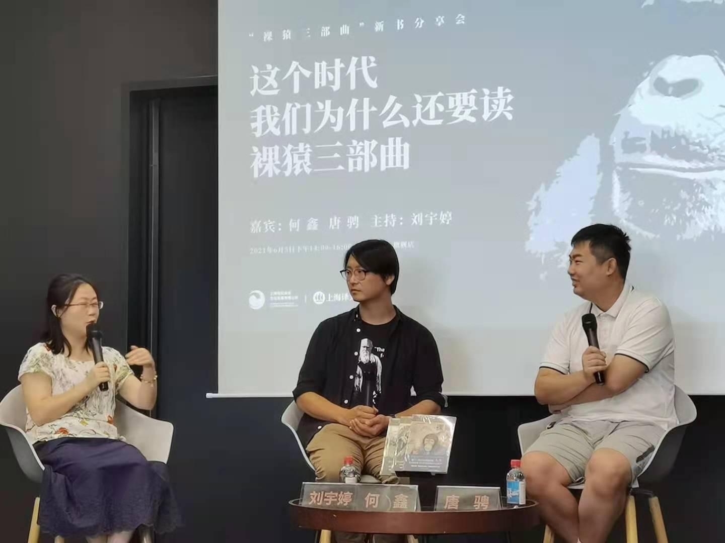 50年过去了,为什么我们还要读“裸猿三部曲”?适逢上海译文出版社推出《裸猿》50周年纪念版(2021年4月),“裸猿三部曲”的另外两本《人类动物园》与《亲密行为》也同时出版,6月5日,上海自然博物馆副研究员何鑫与科普作家、B站知名知识类up主唐骋(鬼谷藏龙)来到上海朵云书院旗舰店,与主持人刘宇婷一起讨论这套经久不衰的巨著。活动现场