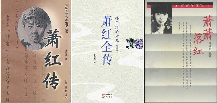 左起:《萧红传》,北京十月文艺出版社2000年出版;《萧红全传:呼兰河的女儿》,现代出版社2016年出版;《萧萧落红》,季红真编,人民文学出版社2001年出版
