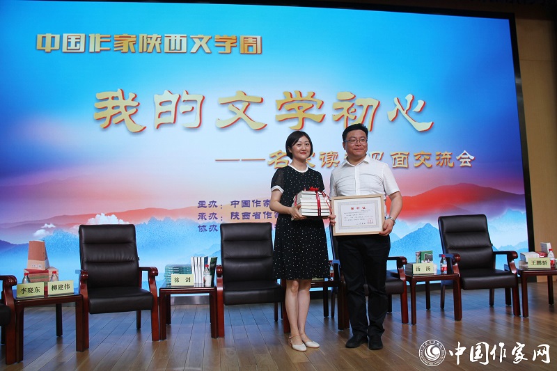交流会开始前,李晓东代表中国作协社联部向陕西省图书馆赠送《英雄时代》《大国重器》等图书十种六十册,陕西省图书馆向中国作协社联部颁发证书。