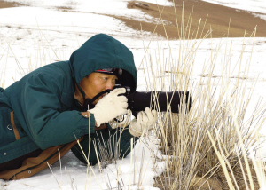 生态摄影家、环保卫士葛玉修在野外拍摄。 孔祥瑞摄
