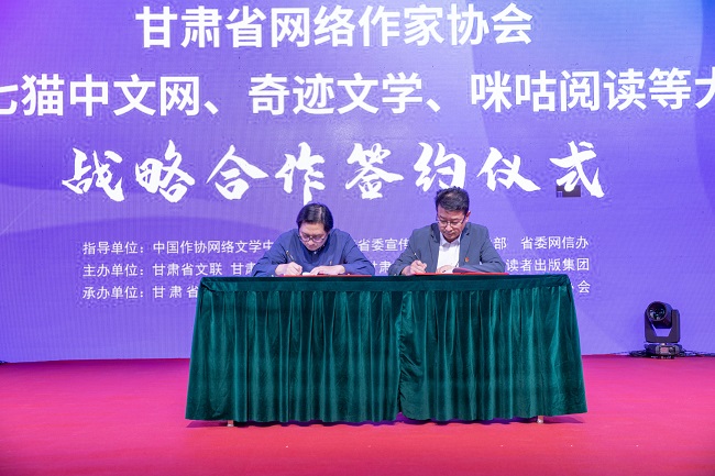 甘肃省网络作协常务副主席胡说和七猫中文网主编赵洁签订战略合作协议