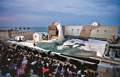 大海总会有些喜怒无常,“天气有时倍儿蓝,有时倍儿恶劣,《伤心咖啡馆之歌》合成的时候,我们都崩溃了,穿着羽绒服。而且毕竟是在海边,不能太热闹,因为人家是来度假的,不能吵着人家,晚上九十点钟该撤就撤了,不能像在一个剧场里那么用劲,为了一个细节熬夜,在这儿,要的就是一个整体的感觉,别把创作当作一个细腻严肃较劲的事儿。如果在剧场里我可能会说,能不能再完美一点?灯光音响所有的细节都需要比较精准,但是在这儿就是另外一股劲儿,跟大自然比,建筑、远处的大海,甚至云彩的变化,人只是在这里一个很偶然的色彩而已。”