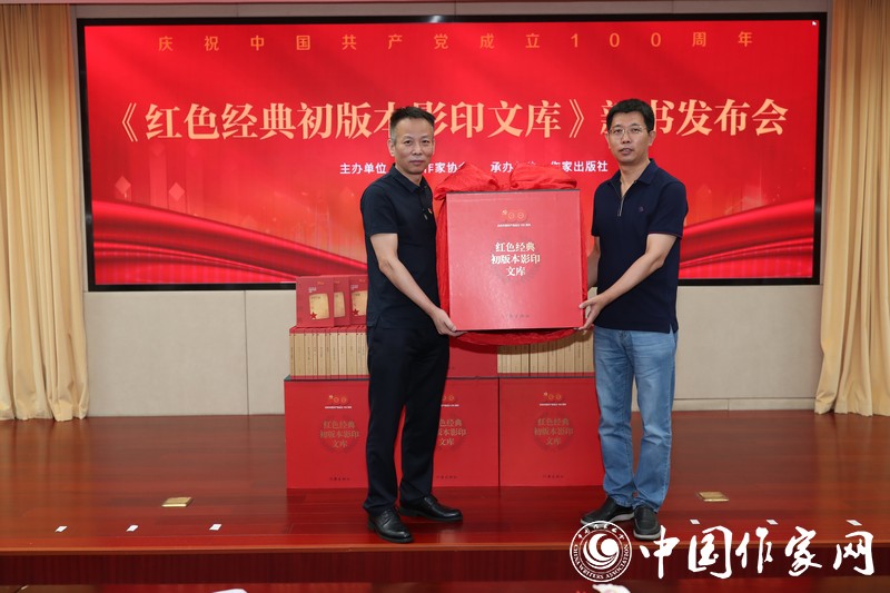 发布会现场,作家出版社有限公司向中国现代文学馆捐赠了60卷本的《红色经典初版本影印文库》。
