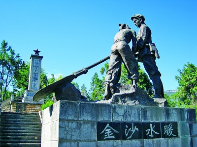 勇毅的先驱,高擎理想的火炬,朝着光明疾行。燃烧的炽焰,红透大江之滨。英雄的形象,也永远留在石鼓渡口,勋章般凝重、壮美。