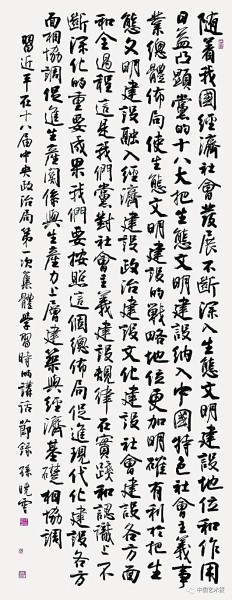中国书法家协会主席孙晓云说,老中青书家们共同努力,他们在中国人民追逐梦想的伟大实践中激发灵感,在新时代蓬勃向上的生活中获得素材,在对人民真挚持久、发自内心的热爱中坚定自信,他们的作品有生活、有情感、有风骨、有魅力。