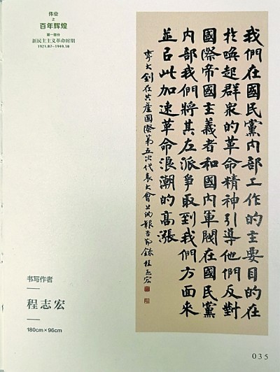 本篇章以微观的视角再现一幕幕感人心魄的生动画面,真实有力地记录在中国共产党的正确领导下,中国人民为了崇高理想英勇奋斗的悲壮史诗,为中国共产党史提交一份书法形式的史实文献。
