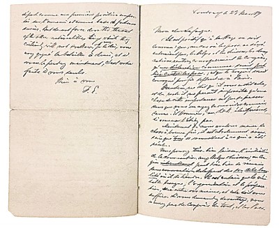 《致保尔·拉法格》弗里德里希·恩格斯 法文钢笔手书原稿2页(正反面) 1889年3月写于英国伦敦。
