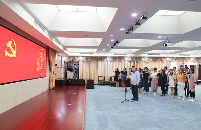 为庆祝中国共产党成立100周年,6月28日,中国作协组织党的十九大以来入党的新党员举行向党旗宣誓仪式,集体重温入党誓词,牢记初心使命,坚定理想信念,强化为党的事业奋斗终生的思想基础。中国作协机关党委书记吉狄马加领誓。