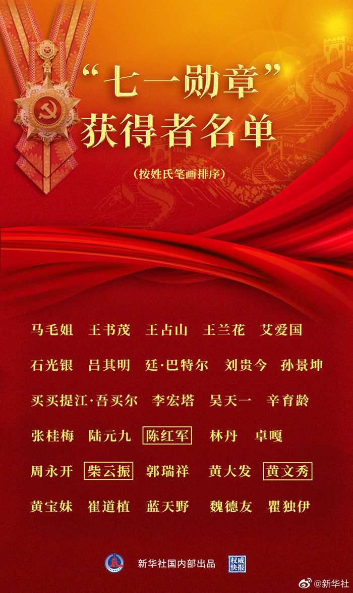 根据《中共中央关于授予“七一勋章”的决定》,授予29名同志“七一勋章”。