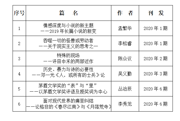 首届《小说评论》年度优秀论文奖公示