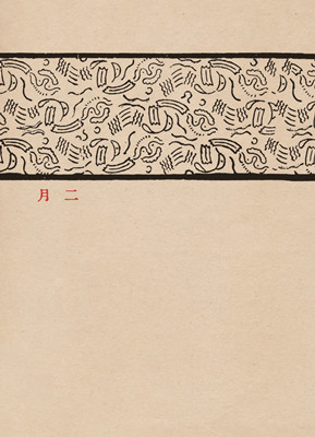 陶元庆(1893-1929),字璇卿,浙江绍兴人。师从丰子恺和陈抱一等名家习西洋画,国画等亦有涉猎,为其从事书籍装帧艺术奠定了美学基础。鲁迅的《苦闷的象征》《彷徨》《故乡》等作品封面皆出自陶氏之手,与丰子恺、钱君匋并称为中国现代书籍装帧的三大家。1929年8月6日,陶元庆因病去世。故柔石《二月》封面成了陶氏遗作。《二月》的封面,陶元庆用上下两段横线,简练地概括了画面的空间,黑色线条勾勒出诸多人物的相貌,在类似河流中颠三倒四漂流着,满幅画面被紧张的情绪所包围,将“二月”主题表现得恰到好处,又耐人寻味。画面富装饰感而柔弱阴沉,虽属于西方的风格,但里面却涵容着一种东方的飘逸的气韵。