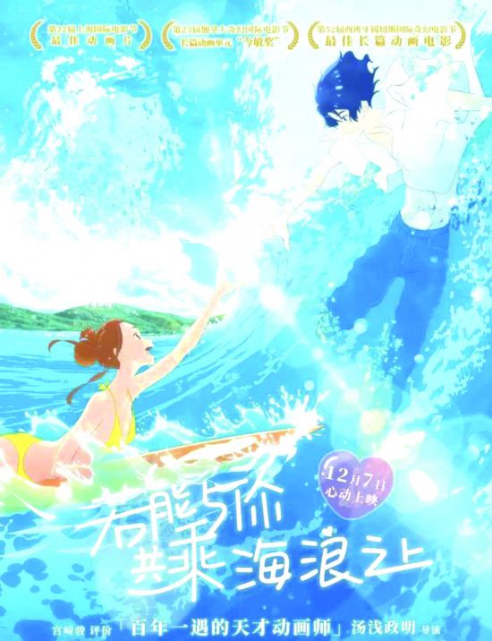 由日本动画导演汤浅政明执导的动画电影《若能与你共乘海浪之上》于2019年6月21日在日本上映,并于2019年12月7日在中国大陆上映。这是一部恋爱电影,同时也是一个关于成长和互相救赎的故事。