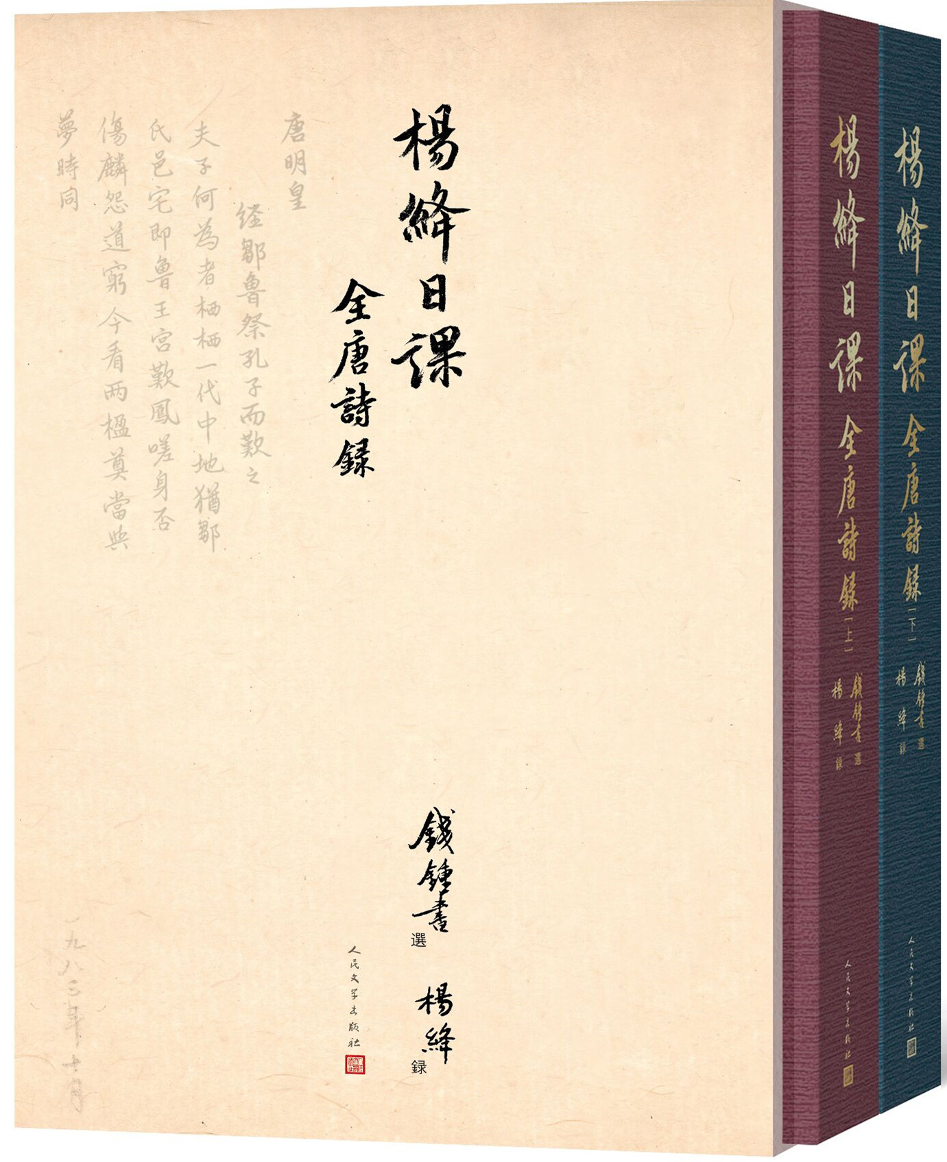 二〇一六年五月二十五日,杨绛先生走完了她一百零五岁的人生。今年为杨先生诞辰一百一十周年,亦正逢她去世五周年,人民文学出版社决定影印她亲手抄录的这部《杨绛日课全唐诗录》,以表示对她的纪念。这部手稿的内容,已在二〇二〇年十一月被该社以《钱锺书选唐诗》为名整理出版。笔者在为该书撰写的“出版后记”中,对钱杨夫妇选诗、录诗的背景有过详细的说明,对钱先生选诗的标准和趣味,也做了一定的分析,有兴趣的读者可以参看。