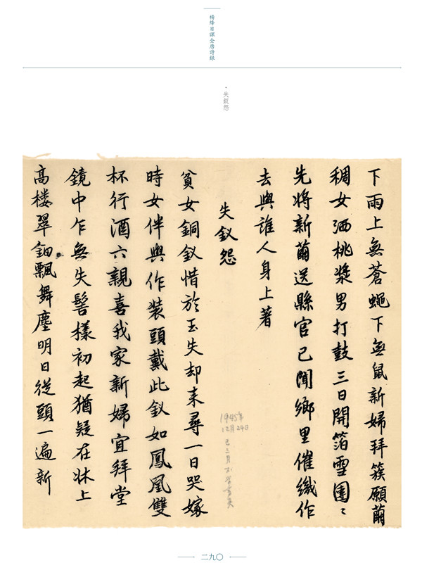 “全唐诗录”有一部分是抄录于杨绛先生使用过的稿纸背面,如《丙午丁未年纪事》