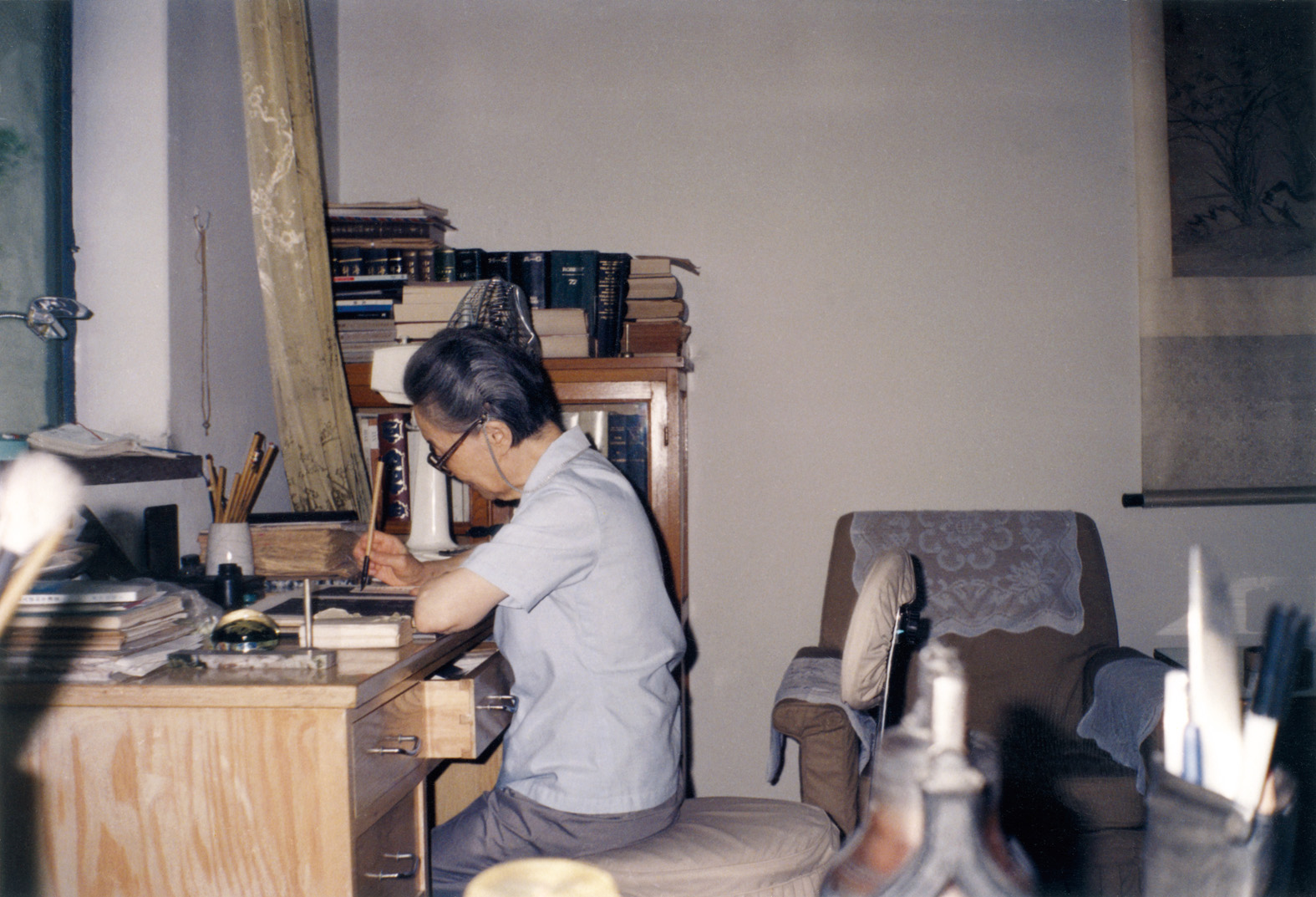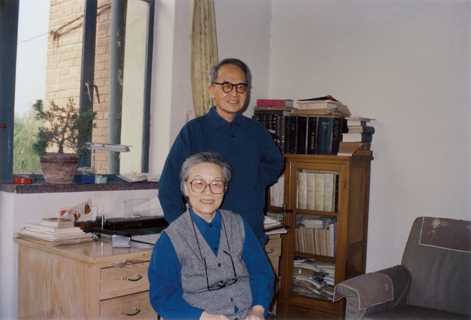 钱锺书先生和杨绛先生在杨先生“唐诗日课”的习字桌前合影