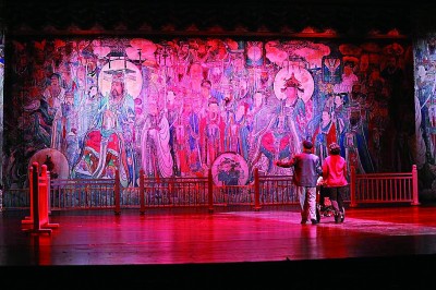 《永乐宫纪事》创造性地将蒲剧、歌剧、舞剧、话剧、音乐剧等多种艺术形式有机结合、融为一体,在充分利用地域文化元素的同时,还将珍贵的永乐宫壁画与现代声光电等舞台技术有机结合,营造出绚丽多彩的舞台效果。