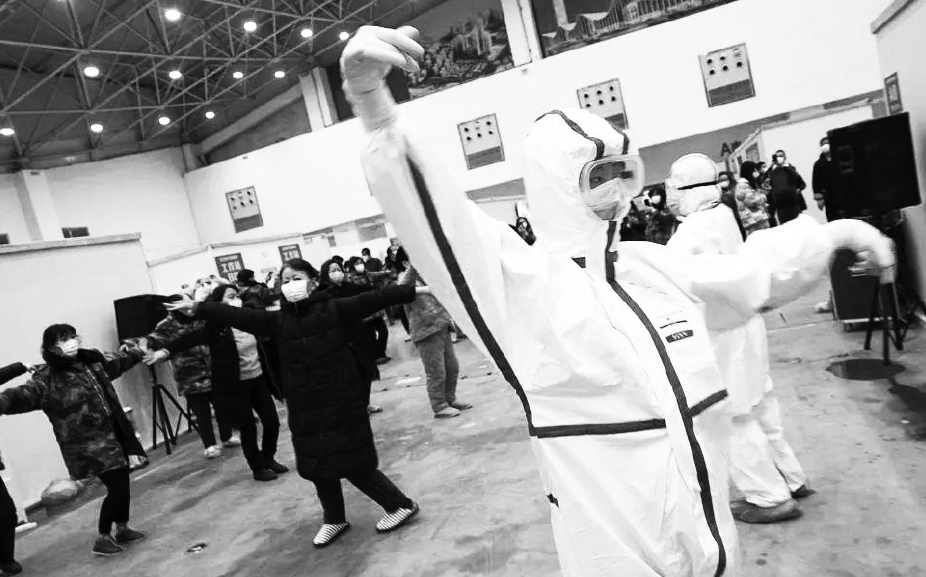 感觉每天的时间过得好快,我从接到通知到“持证”上岗,对环境从陌生到熟悉,对工作从手足无措到得心应手,没有时间让我们恐惧和不安,更没有时间患得患失。在方舱医院,每天除了为患者监测生命体征外,最重要的是对他们进行心理疏导。每一个患者面对自己的病情,难免会有恐慌,情绪低落。我们会为他们准备小节目,教他们八段锦,让他们放松心情。