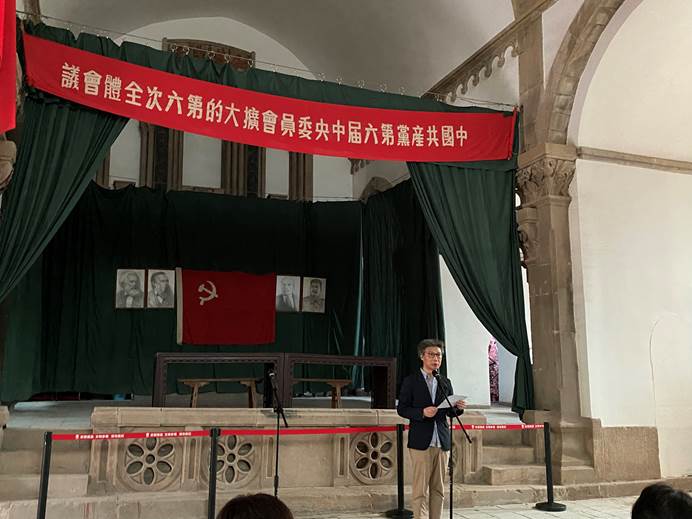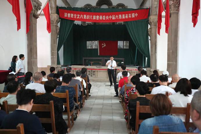“史诗的图像建构·党史百年历史画创作与研究学术研讨会”在延安鲁艺礼堂开幕,中国美协分党组书记、驻会副主席徐里致辞。
