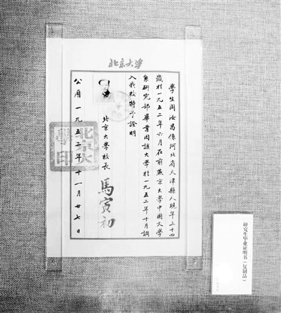 周汝昌研究生毕业证明