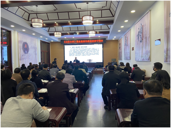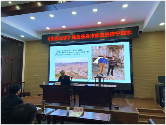为贯彻落实山东省委宣传部、山东省作协党组“加大为基层作者服务”的工作指示,进一步做好文学普及和服务基层工作,4月9日,《山东文学》服务基层作家走进济宁市泗水县,了解基层作家文学创作情况,给基层作者赠送《山东文学》,并邀请著名作家赵德发为基层作者授课。山东省作协副主席、《山东文学》主编刘玉栋,中共泗水县委常委、宣传部长程国栋,泗水县文联主席张宁等出席此次活动。