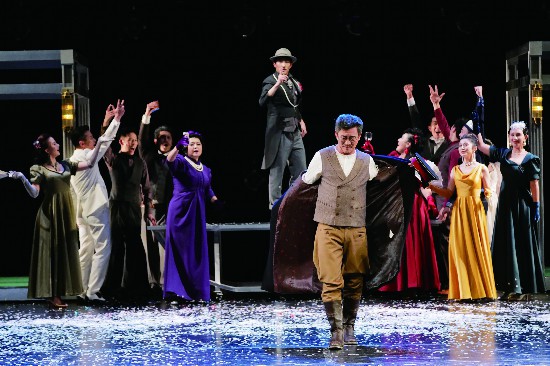 在这部剧中,导演为我们呈现的是一出“抒情喜剧”。性格化的人物塑造、欢乐幽默的舞台氛围、跳进跳出的叙事方式等,从中可以感受到年轻导演的才华和热情。导演充分利用了舞台空间的几个支点,演员也饱含热情,以略带夸张的现实主义表演方法塑造出具有性格化特征的人物。当新娘娜嘉离家出走迈向自由的时候,舞台上飞舞着漫天“雪花”,肖斯塔科维奇的《第二圆舞曲》响起,整个演出有着一种抒情的诗意。