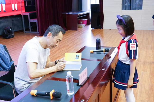 讲座后,常新港与学生们进行了互动问答,帮助孩子们解答有关阅读、写作等方面的疑惑,并为部分学生代表进行了签名赠书。