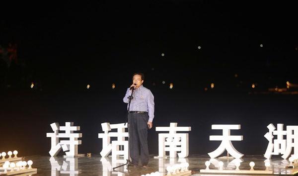 诗伴歌,云映湖,7月10日晚,首届“诗话南天湖”文化朗诵活动在丰都县南天湖畔举行。重庆诗词学会的近二十位文学志愿者参与活动。
