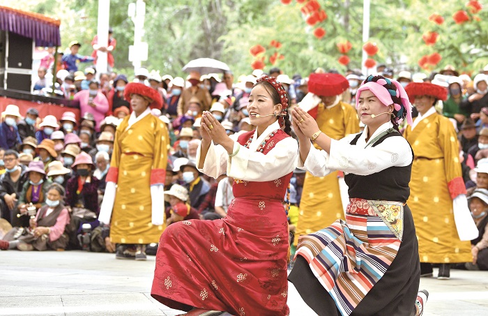 西藏自治区民族艺术研究所所长努木认为,西藏自治区幅员辽阔,地域特征鲜明,文化底蕴深厚。千百年来,世居青藏高原的藏族在与其他民族文化特别是内地中原文化互鉴交融的漫长历史中,创造和发展了博大精深、多姿多彩的西藏文化艺术,为丰富和塑造伟大的中华文明作出了积极贡献,是中华文化的重要组成部分。西藏和平解放,尤其是民主改革,推翻了封建农牧政教合一制度,建立了社会主义制度,百万农奴翻身解放,做了社会的主人,自此西藏文化从狭隘走向包容,从封闭走向开放,西藏社会进入了一个新的伟大时代,西藏文化艺术焕发出前所未有的活力。改革开放以来,尤其是党的十八大以来,西藏文化艺术事业坚持以人民为中心的工作导向,紧紧围绕“铸牢中华民族共同体意识”“各民族交往交流交融”的主线,牢牢守住政治底线和安全底线,为西藏的稳定和发展发挥了文化艺术不可替代的作用,为决胜全面小康、决战脱贫攻坚,建设重要的中华民族特色文化保护地提供了有力思想保证和强大精神动力。中华文化始终是西藏各民族的情感依托、心灵归属和精神家园,西藏各民族文化是中华文化不可分割的一部分的思想已深深扎根在各民族干部群众心中。
