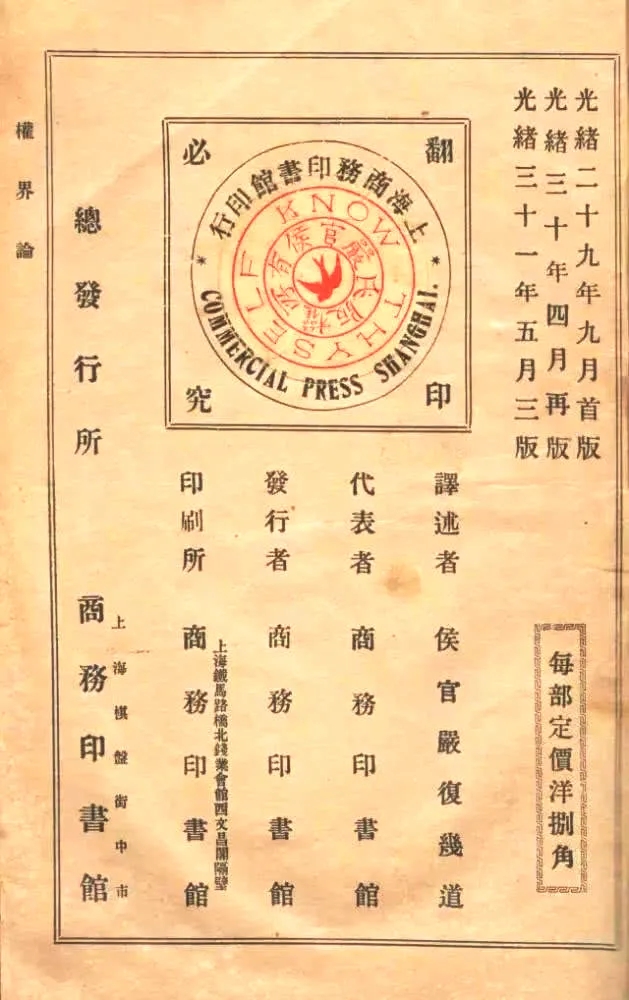 严复译:《群己权界论》上的版权声明