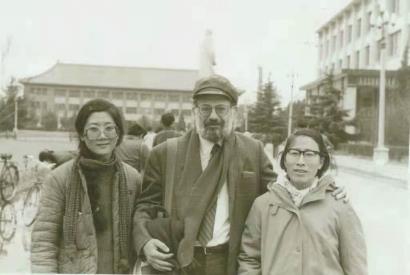 1984年在北大与金斯堡合影(左起:朱荔、金斯堡、陶洁)