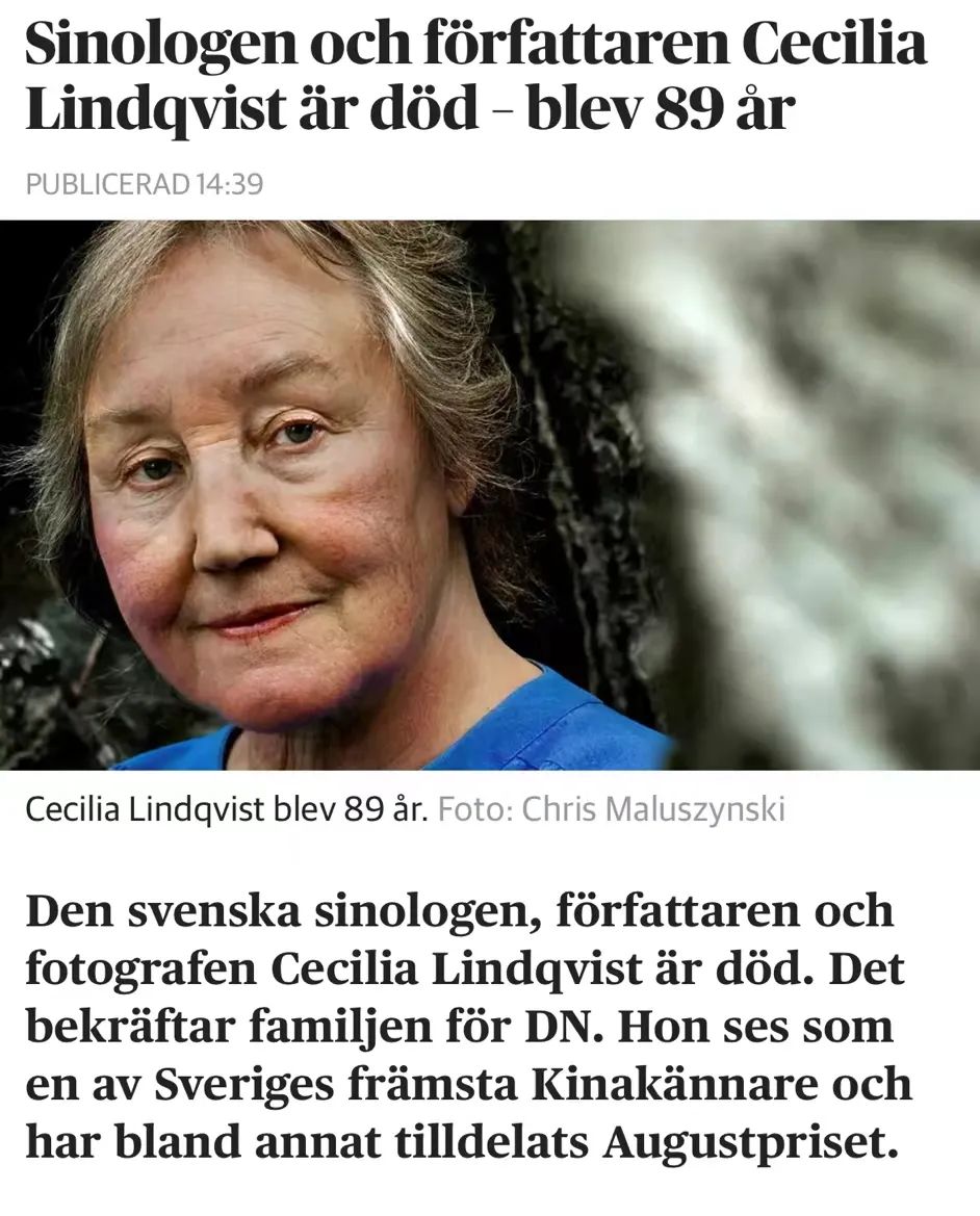 澎湃新闻从活字文化方面获悉,瑞典汉学家林西莉(Cecilia Lindqvist)于当地时间上周日(9月26日)去世,享年89岁。1950年代末,林西莉跟随瑞典汉学家高本汉(Klas Bernhard Johannes Karlgren)学习汉语。1961年至1962年,林西莉来到北大读书求学,此后曾数十次到中国访问。