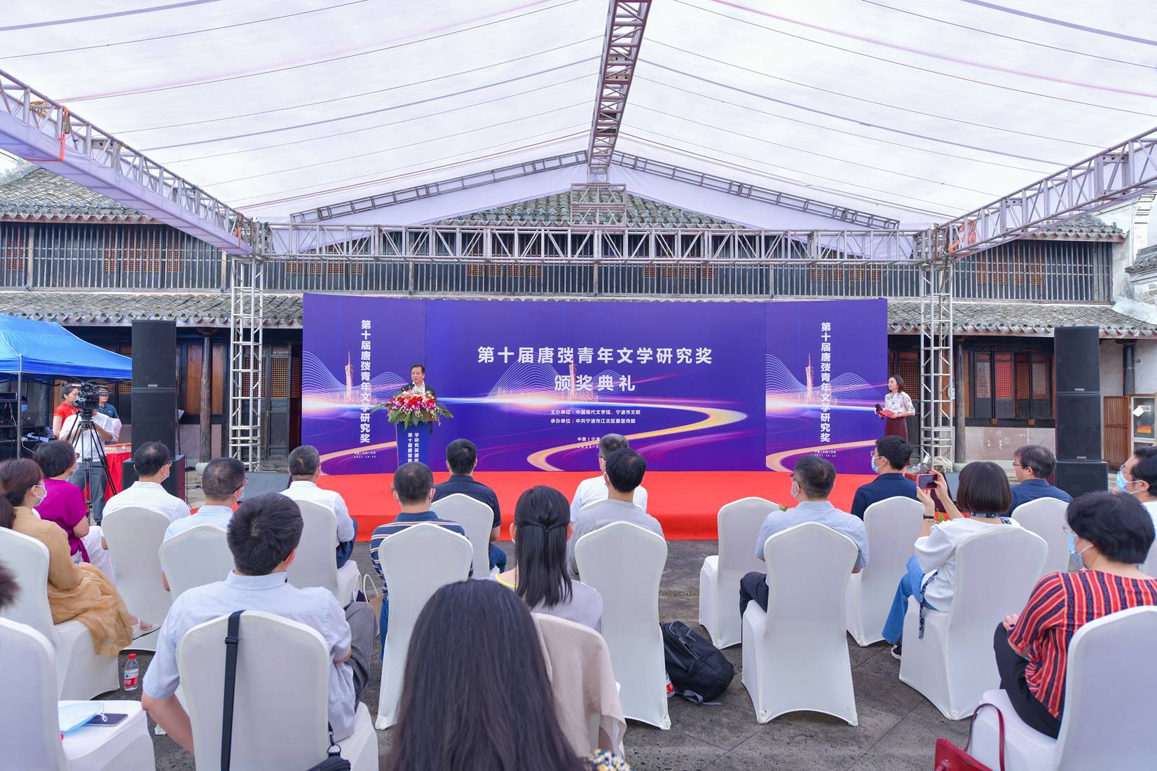 10月10日,由中国现代文学馆、宁波市文联主办,中共宁波市江北区委宣传部承办的第十届“唐弢青年文学研究奖”在宁波慈城举办盛大的颁奖典礼,这是该奖项自创办以来首次在唐弢的故乡宁波江北颁发。中国作家协会党组成员、副主席、书记处书记李敬泽,宁波市文联党组书记、主席杨劲,宁波市江北区委常委、宣传部长卜明长出席颁奖典礼并致辞。浙江省作协主席艾伟,中国现代文学馆副馆长梁飞、李洱,第十届“唐弢青年文学研究奖”评委会成员、学者王鸿生、吴俊及宁波市和江北区的相关领导出席仪式并为获奖者颁奖。
