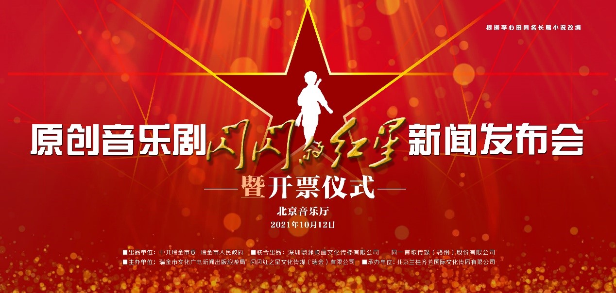 由作家李心田1971年创作的中篇小说《闪闪的红星》改编的同名电影为一代代中国人熟知。今秋,由曹瑜编剧,新锐青年导演王哲、蒋雅頔联合执导的大型原创音乐剧《闪闪的红星》,将于2021年10月28日登陆北京世纪剧院。在年轻一代创作团队的演绎下,作品将以全新的面貌出现在音乐剧舞台上。10月12日,该剧新闻发布会暨开票仪式在京举行。