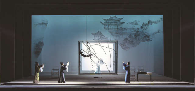 如今,重新审视非遗文化,就是对非遗文化最好的保护。我看到在更多的传统舞台上,舞台美术已展开了对非遗文化的思考,有了一定的收获。如京剧《锁麟囊》《成败萧何》,昆曲《牡丹亭》《班昭》《邯郸梦》,粤剧《搜书院》《大明悲歌》等。这些舞美艺术在尊重传统和传统创作手法的基础上,作了一些变革、变通,运用现代科技的手段,显示了整体的舞台审美语言,创造了更鲜活的形象。所以,研究舞台美术创作与保护、传承戏曲艺术,两者之间是不能分割的。在舞美艺术上,我们的舞台美术设计师、舞台科技专家乃至工艺性较强的舞台工匠和舞台技师已经做出过不少的努力,在不断地超越“约定俗成”的局限中,汲取了传统的、民族的艺术精髓,增强、拓展了自己的发展空间。