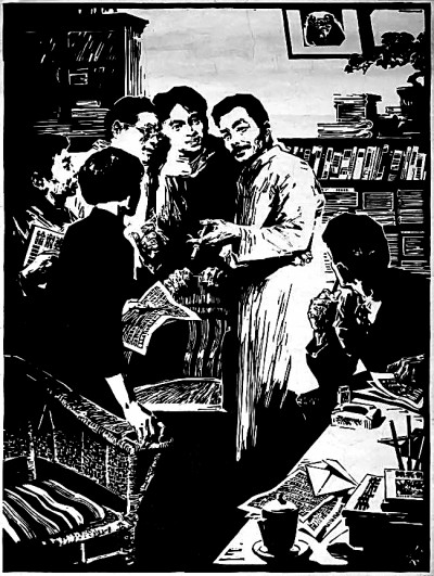 鲁迅与青年(木刻版画) 沈尧伊/作