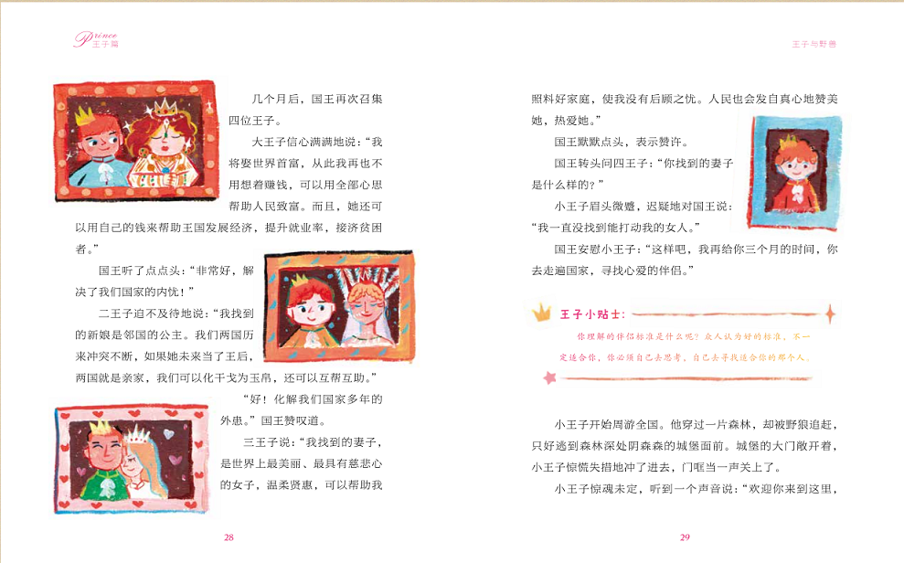 方刚:公主篇、王子篇的设计,更多是基于故事本身的角色而定,从性别教育的角度看,本书的内容都是应该男生和女生都读的。性与性别教育工作者的一个共识是:性教育不应该分男女。