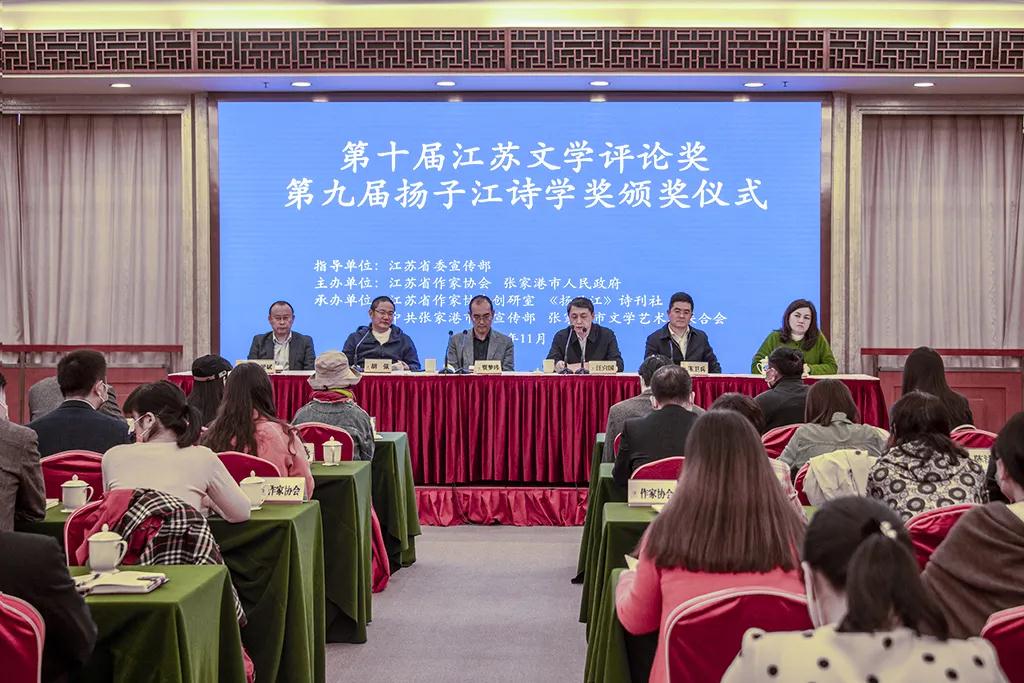 2021年11月6日,第九届扬子江诗学奖在张家港颁奖。江苏省作家协会党组书记汪兴国,副主席贾梦玮,《扬子江诗刊》主编胡弦,张家港市委宣传部部长陈卫兵、副部长李忠影,市文联党组书记、主席钱梁斌,以及特邀的省内外诗人、评论家和获奖作者代表等出席了颁奖活动。