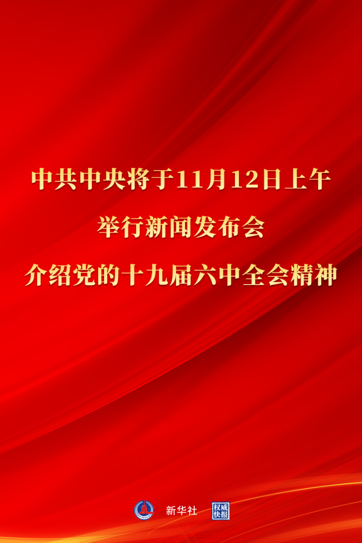 中共中央将于12日上午举行新闻发布会 介绍党的十九届六中全会精神