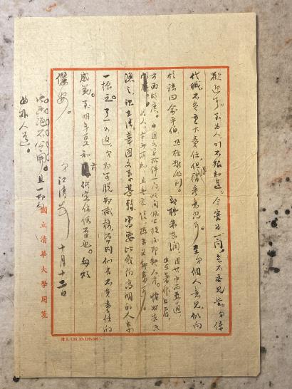另一通终得入藏寒斋的信札更令人感觉珍贵。所以说更者,不仅同样写给我素所景仰的施蛰存先生,同样内容相当丰富,还关涉浦先生短暂一生中学术、教育之外的另一件功业,主政清华大学中国文学系。这对于正谋食于清华中文系的后辈而言,不能不平添一份大大的亲近感了。为节省篇幅,只将相关内容迻录于下: